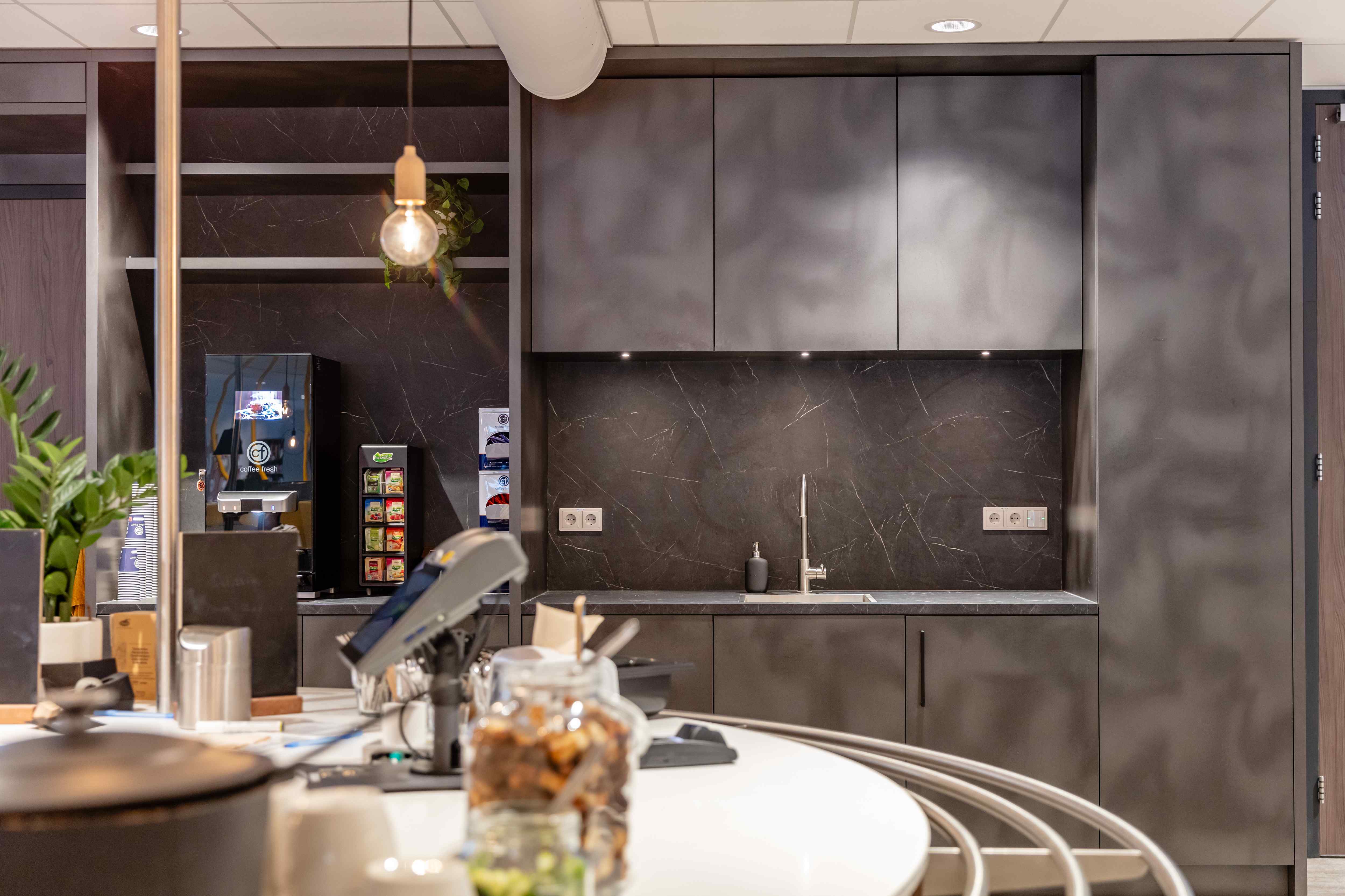 Wij hebben het kantoorpand van Sanovo in Aalten mogen voorzien van een maatwerk inrichting. Elk detail is afgestemd op de wensen van de opdrachtgever, met een perfecte balans tussen functionaliteit en stijl.